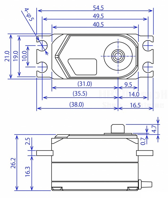 Futaba HPS-CD701 - 1/10 Drift-Car Servo The HPS-CD700 drift servo has been redesigned with UR mode! High-performance brushless specification that achieves amazing torque and low power consumption. The HPS-CD701 is a low-profile servo that supports "UR mode". Features: Replacing the HPS-CD700 servo Compatible with UR/SR modes S.BUS system Brushless HPS motor Metal 1-3 gears High-strength metal final gear Aluminum case Black cord Specs: Size: 40.5x21x26.2mm Weight: 53g Speed @ 6V: 0.055s/60° Speed @ 7.4V: 0.045s/60° Torque @ 6V: 14kg/cm Torque @ 7.4V: 17kg/cm